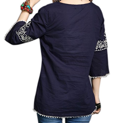 Top For Latest Fashion Trend, 3/4 Sleeves, Perfect Color, Mild Wash, Dry Inside Out, Don't Use Heavy Iron On Embroidery, Short Sleeves Blended With Decent Embroidery, Fit- Regular Fitting Color: Blue