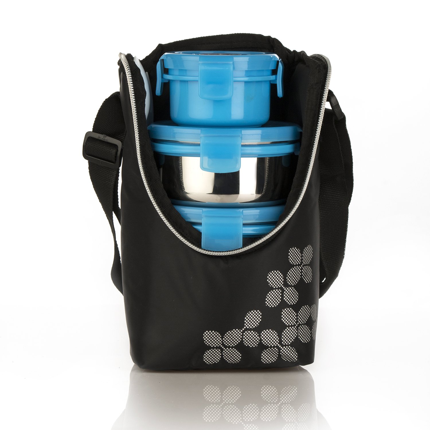 Presenting an international concept Cello max fresh products are made of sturdy fabric hygienic stainless steel containers for storing food free from any health hazard and fresh for long hours. As the name itself states Cello max fresh, now enjoy freshly packed food in these airtight stainless steel containers. The Lunch pack consists of food grade containers made of stainless steel packed in a soft fabricated carry pouch which makes it easy to carry and ideal for office, school, and traveling. The lid of the containers consists of food grade silicone seal that locks in the freshness and retains the moisture of food for long hours. Virtually airtight and liquid-tight seals include 4 side lock for easy opening of the container. The jacket consists of an additional pocket to keep fork and spoon. It has a high-quality zip for the long performance. Stop your worries of spilling of food contents from the lunch box Cello max fresh lunch packs is one shop solution that addresses all your precautions before carrying lunch.