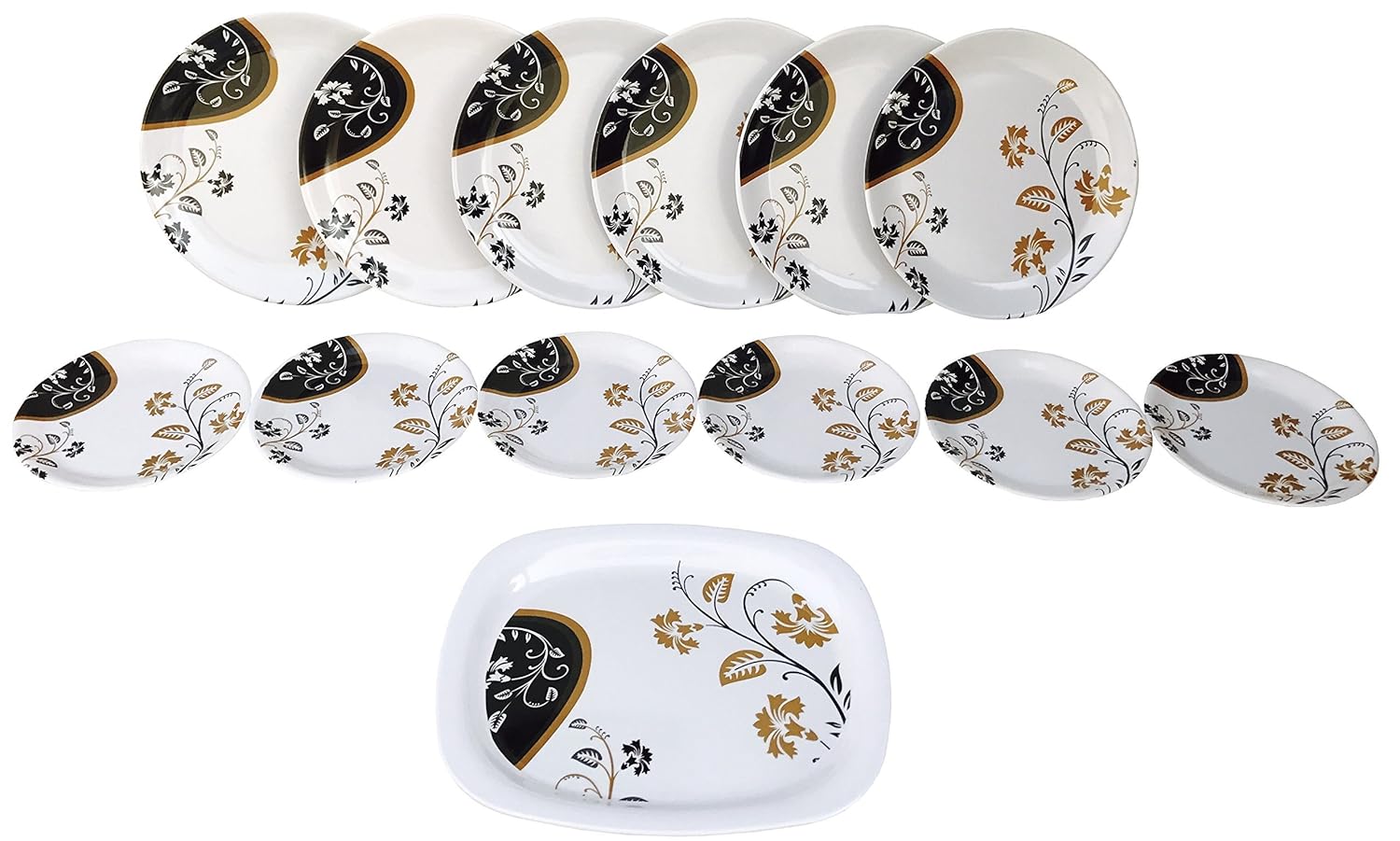 - Dinner Set is made of the superior quality of Melamine with attractive and beautiful Brownie print on White.