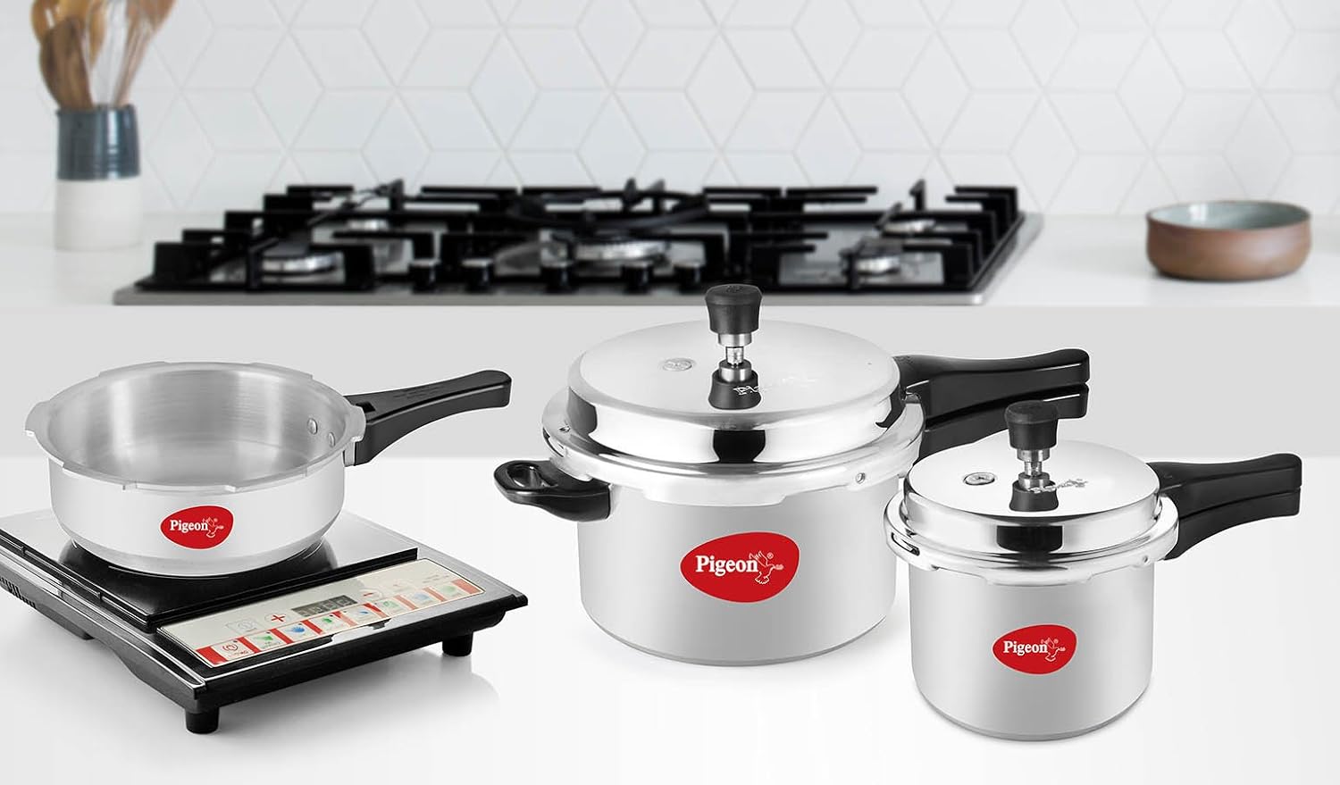 Pigeon Non Stick Cookware & Pressure Cooker (Induction Bottom) The Cookers are of a Capacity of 5,3.5 & 3 ltr.